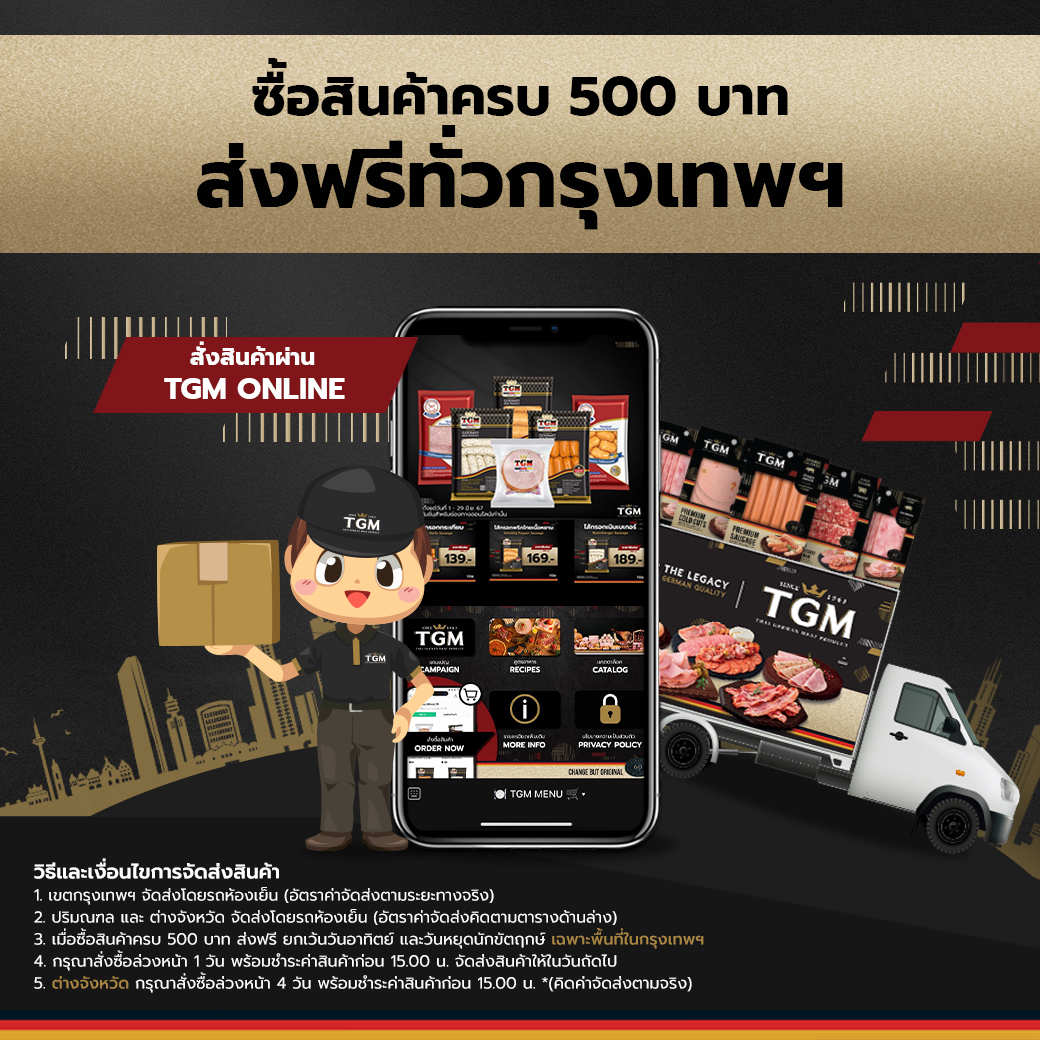 2. ซื้อครบ 500 บาท ส่งฟรี เฉพาะพื้นที่กรุงเทพฯ *ยกเว้น วันอาทิตย์ และวันหยุดนักขัตฤกษ์*